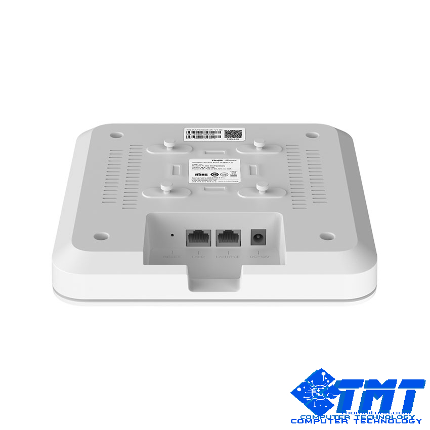 Loại thiết bị | Hỗ trợ 2 băng tần 2.4GHz và 5GHz chuẩn 802.11a/b/g/n/ac Wave1/Wave2, MU-MIMO – Hỗ trợ tối đa 110 người dùng | 8 SSID – Hỗ trợ Roamming Layer 2, Layer 3 – Hỗ trợ các tính năng WIFI marketing (Khi sử dụng với Reyee Gateway) – Hỗ trợ dịch vụ Ruijie Cloud miễn phí cho phép cấu hình nhanh, đơn giản, quản lý và giám sát dễ dàng. |