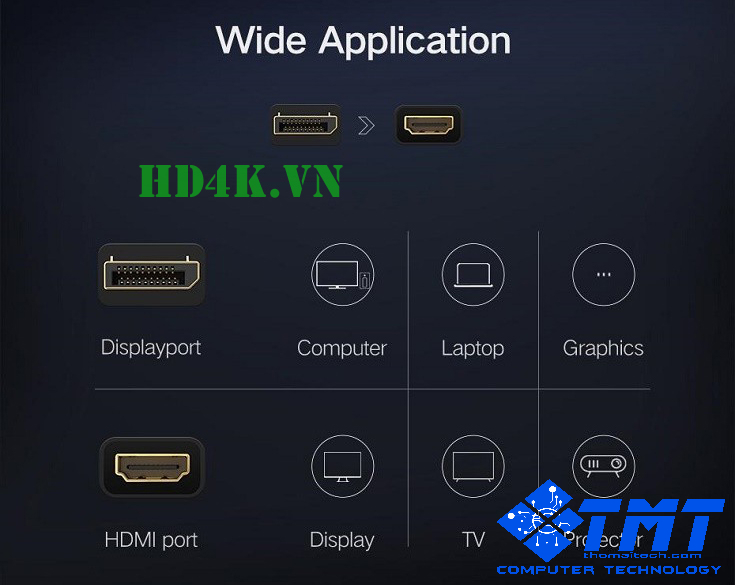 Với khả năng tương thích tốt, cho phép bạn kết nối để xuất hình ảnh, video đến các thiết bị HDMI như một màn hình, máy chiếu, HDTV với máy tính, laptop.