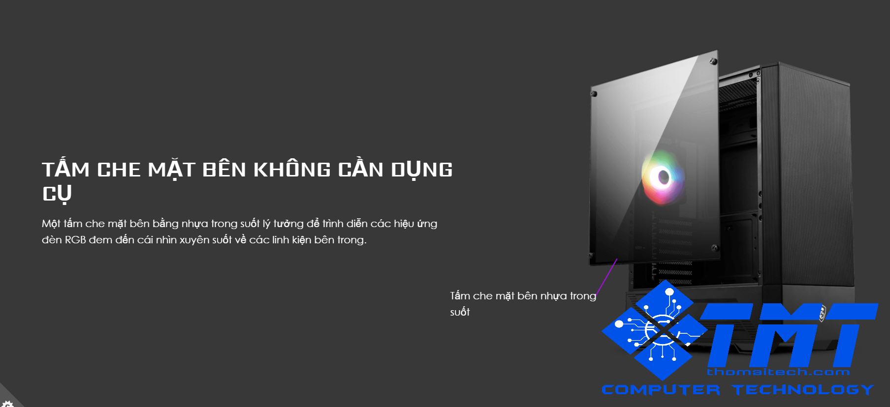 Một tấm che mặt bên bằng nhựa trong suốt lý tưởng để trình diễn các hiệu ứng đèn RGB đem đến cái nhìn xuyên suốt về các linh kiện bên trong.