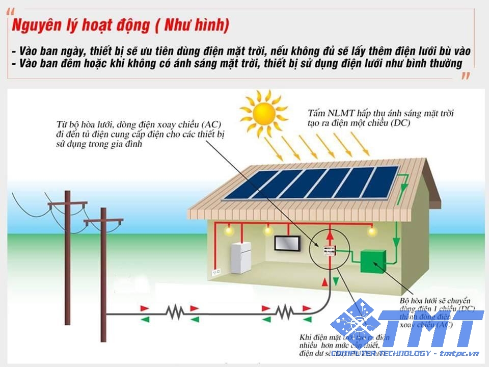 Tại Hải Phòng, thị trường điện mặt trời áp mái đang ghi nhận sự tham gia của nhiều đơn vị cung cấp giải pháp năng lượng. Trong đó, TMT Solar là một trong những đơn vị cung cấp và triển khai hệ thống điện mặt trời, với các giải pháp áp dụng cho đa dạng mô hình như nhà dân, biệt thự, doanh nghiệp, tòa nhà cao tầng và các dự án áp mái tại khu công nghiệp.