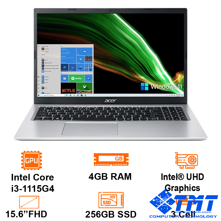 Laptop Acer Aspire 3 A315-58-35AG / Màn hình 15.6 FHD IPS I3-1115G4 /4GB/256GB SSD ( Bạc )