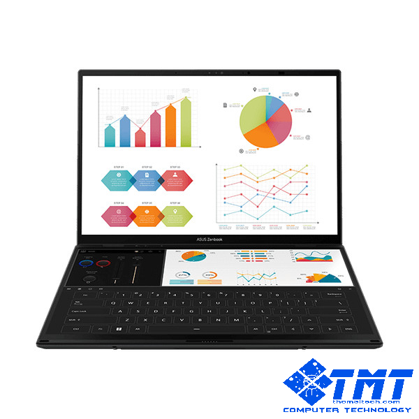 Máy tính xách tay ASUS Zenbook Duo OLED UX8406MA PZ142W có thiết kế cao cấp với lớp vỏ kim loại nguyên khối. Máy mỏng và nhẹ, chỉ dày 22mm và nặng 1.65kg, đặt biệt phù hợp cho những ai cần di chuyển nhiều hoặc đem máy đi làm việc thường xuyên. Với ASUS Zenbook Duo OLED, bạn sẽ có 2 màn hình phù hợp cho mọi nhu cầu làm việc cũng như giải trí cá nhân, đi kèm với đó là bộ vi xử lý hiệu năng vượt trội.