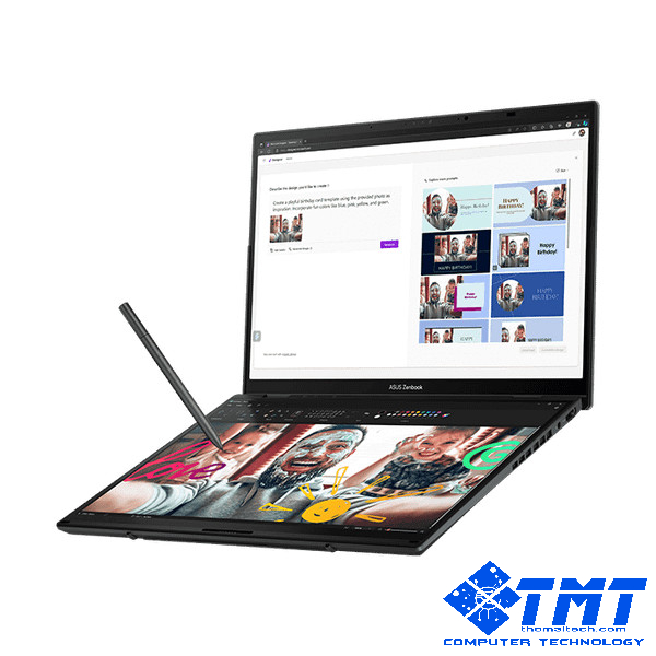 Mẫu laptop ASUS Zenbook Duo OLED UX8406MA PZ142W được trang bị bộ vi xử lý Intel Ultra 9 Processor 185H với 16 nhân, 22 luồng và tốc độ tối đa lên đến 5.1GHz, mang đến bộ vi xử lý vô cùng mạnh mẽ và đảm bảo xử lý tốt mọi nhu cầu cơ bản như lướt web, xem phim, ứng dụng văn phòng. Ngoài ra, 32GB LPDDR5X giúp máy luôn hoạt động mượt mà, chạy nhiều phần mềm cùng một lúc mà không lo bị lag.