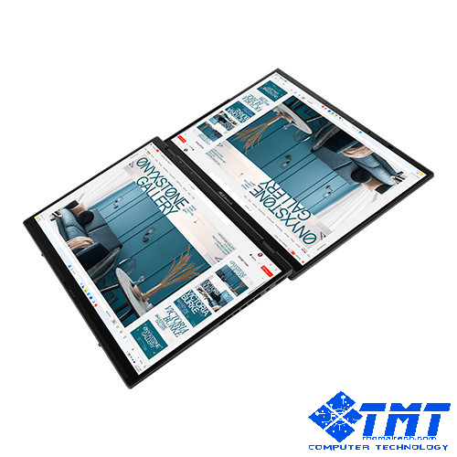 Hai màn hình cảm ứng 16:10 14-inch 3K (2880 x 1800) ASUS Lumina OLED mở rộng không gian quan sát cho bạn, với độ sáng tối đa 500 nit và tỷ lệ màn hình trên thân máy 91%.