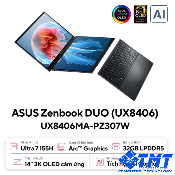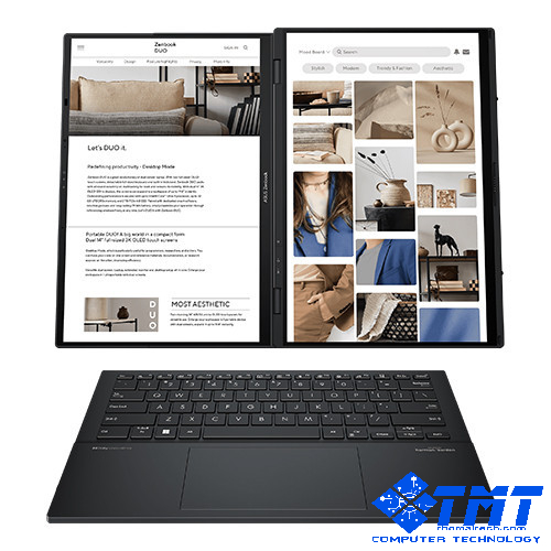 ASUS Zenbook Duo - Laptop hai màn hình đột phá, với hai màn hình cảm ứng 3K OLED kích thước đầy đủ, bàn phím có thể tháo rời và giá đỡ tích hợp. Sự kết hợp chuyên nghiệp giữa tính linh hoạt đa nhiệm và khả năng di động mạnh mẽ.
