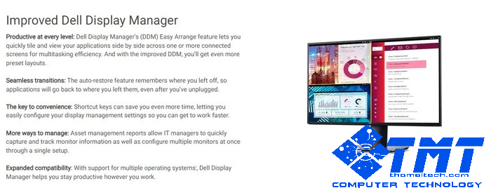 Expanded compatibility: Với sự hỗ trợ cho nhiều hệ điều hành, Dell Display Manager giúp bạn duy trì hiệu quả trong bất kỳ công việc nào.