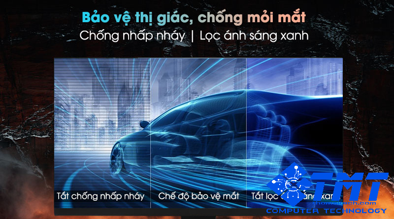 Công nghệ Flicker-free technology. Giảm ánh sáng xanh bảo vệ thị giác tốt, chống mỏi mắt ngay cả khi ngồi lâu trước màn hình với công nghệ Low Blue Light