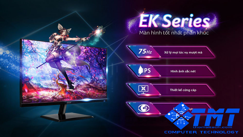 Tần số quét 75Hz, và thời gian phản hồi 4ms, thực hiện mượt mà các tác vụ văn phòng, gaming và đồ họa.