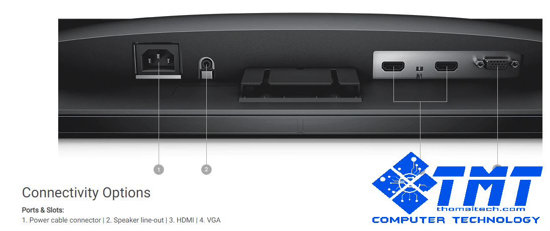 Màn hình được trang bị kết nối HDMI, D-sub phổ biến trên các dòng máy tính hiện nay. Với cổng kết nối này bạn cũng có thể dễ dàng kết nối laptop để hiển thị hình ảnh trên một màn hình lớn hơn.