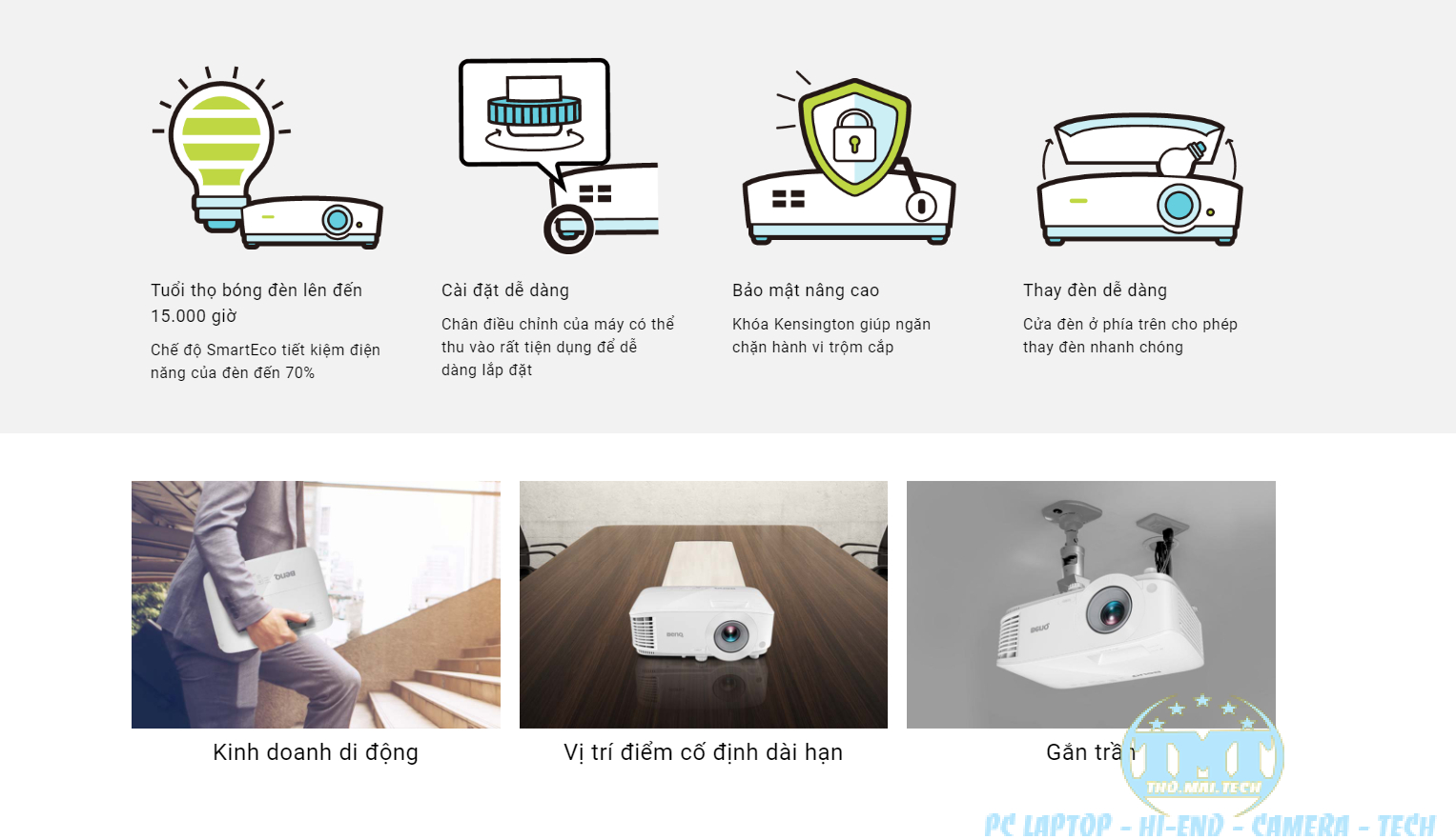 Cửa đèn được đặt ở trên cùng, thuận tiện cho việc bảo trì và thay đèn nhanh chóng khi máy chiếu được gắn trên trần trong phòng họp.