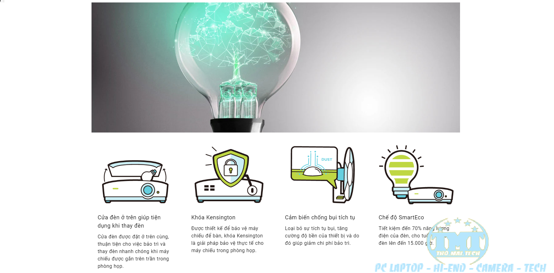 Tiết kiệm đến 70% năng lượng điện của đèn, cho tuổi thọ bóng đèn lên đến 15.000 giờ.