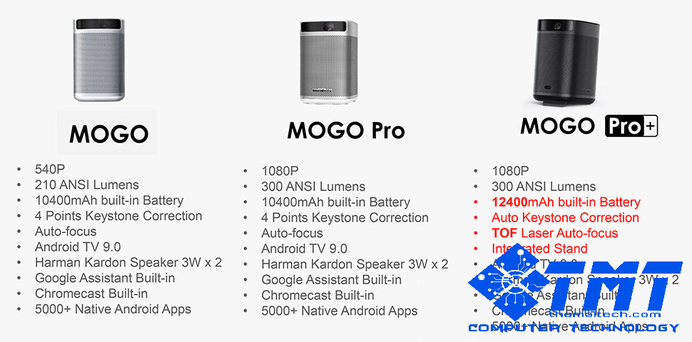 * Âm thanh ở cả hai sản phẩm Mogo Pro và Mogo Pro Plus đều được trợ giúp bởi Harman-Kardon có công suất 3 Watt,hiệu ứng điện ảnh sống động nên rất hoàn hảo cho mọi nhu cầu của bạn từ nghe nhạc cho tới xem phim ,trình chiếu.