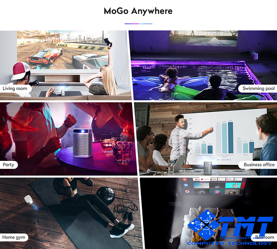 * Không giống như máy chiếu truyền thống, Mogo sử dụng nguồn sáng LED độ sáng cao nhưng tuổi thọ LED cho 30,000 giờ. Đủ cho 20,000 phim, nghĩa là bạn có thể xem 4 phim với Mogo mỗi ngày cho các tiếp theo 10 năm.