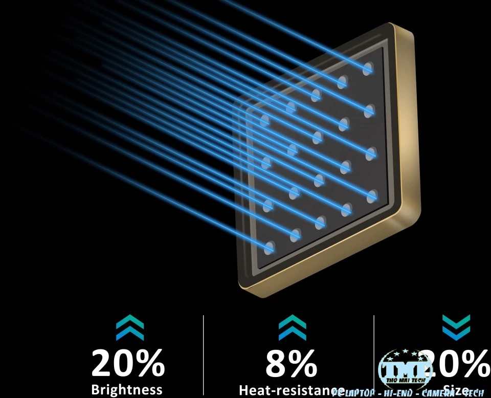 Nhờ công nghệ Laser Phosphor thế hệ thứ 2, độ sáng được cải thiện (đến 20%), chịu nhiệt và giảm kích thước sản phẩm mà vẫn cho màu sắc tuyệt vời, thiết kế tối tối giản và công tắc bật/yắt ngay lập tức.