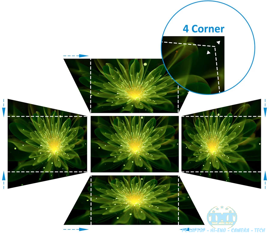 Hỗ trợ thay đổi góc độ hình ảnh thông qua các phím điều khiển 4 chiều nhằm loại bỏ hình ảnh bị méo.