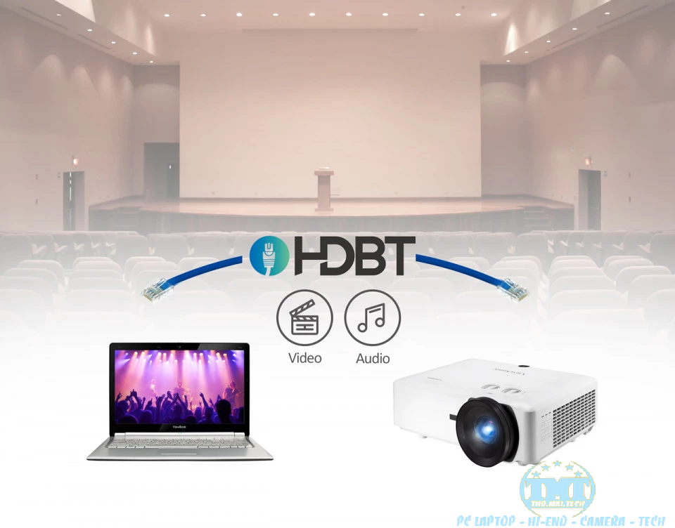 Với đầu thu HDBT tích hợp, máy chiếu này có thể nhận được video và âm thanh độ phân giải cao không nén trên một khoảng cách dài (100m cho 1080p) thông qua cáp mạng Cat.5e/6 và tương thích với bất kỳ máy phát HDBaseT được chứng nhận nào.