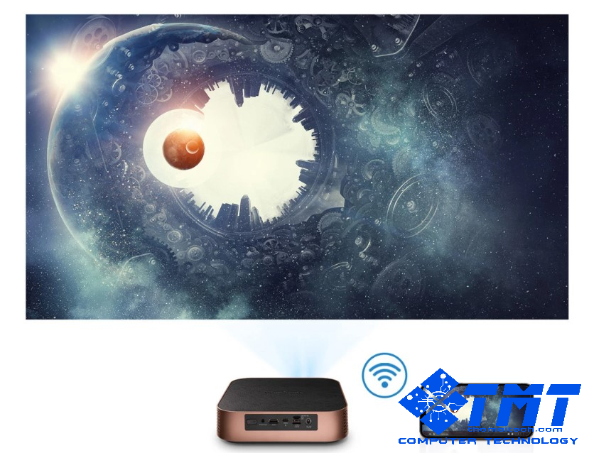 Với tính năng kết nối Wi-Fi tốc độ cao 5GHz tích hợp, bạn có thể truyền hoặc phản chiếu nội dung từ thiết bị cá nhân lên màn hình lớn một cách dễ dàng mà không cần sử dụng dây cáp. Bạn có thể sử dụng M2W như một loa Bluetooth để khởi động bữa tiệc hoặc kết nối tai nghe Bluetooth của bạn và thả mình vào thế giới giải trí trên màn hình lớn tận hưởng một cách tuyệt vời.