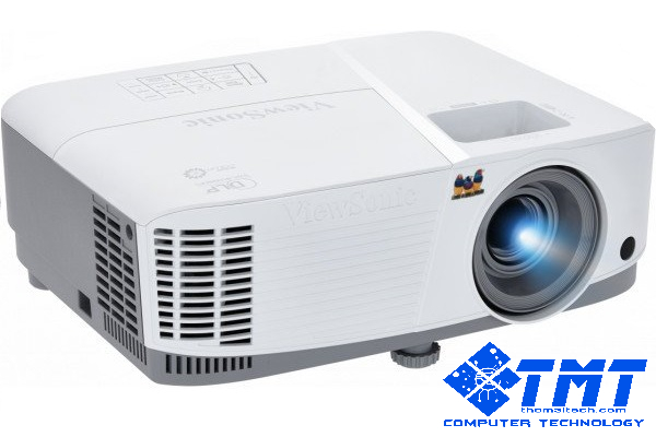 Ở mặt trước máy chiếu là ống kính được thiết kế bên phải và lùi vào phần thân, ở mặt trên là hệ thống các nút bấm, điều chỉnh tắt bật và các chế độ của máy.
