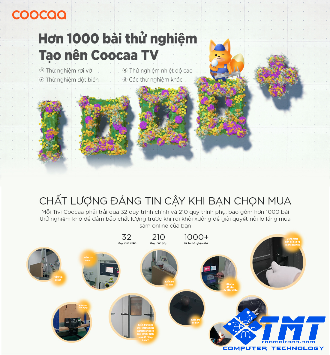 Độ phân giải màn hình của tivi Coocaa từ HD, Full HD và 4K. Hầu hết những TV này có độ phân giải FullHD chỉ riêng hai dòng sản phẩm 50S5G và 55S5G có độ phân giải 4K.