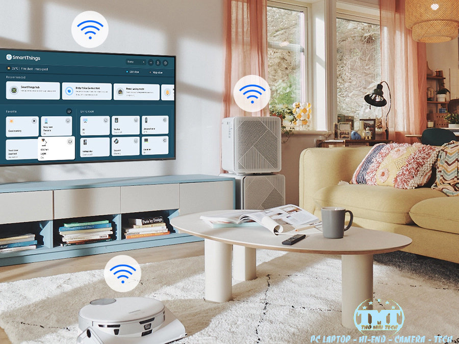 Hãy thư giãn và để người quản gia thông minh của bạn lo liệu mọi thứ. SmartThings có thể kết nối liền mạch, giám sát và điều khiển tất cả các thiết bị thông minh trong nhà của bạn một cách trực quan. Bạn có thể điều khiển các thiết bị trực tiếp bằng remote hoặc giọng nói khi xem TV.