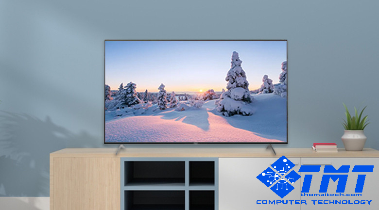 Kích thước tivi 55 inch thích hợp bố trí vào nhiều không gian nội thất khác nhau như phòng khách, phòng họp,... Ngoài ra với chân đế dạng chữ V kim loại chắc chắn, giúp tivi đứng vững trên nhiều bề mặt khác nhau.