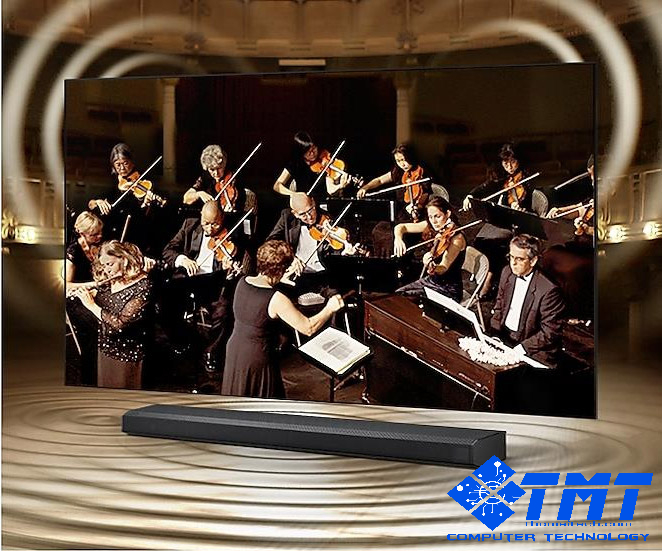 Công Nghệ Q-Symphony - Thăng hoa cùng những thanh âm tuyệt vời, được đồng bộ liền mạch giữa loa thanh Samsung và TV. Công nghệ Q-Symphony tận dụng loa TV và loa thanh, kiến tạo không gian giải trí đỉnh cao, bao trùm mọi giác quan.