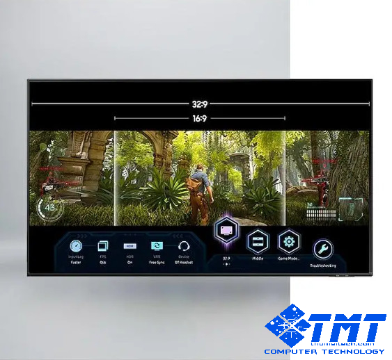 GameView & Game Bar Super Ultrawide - Mở rộng tầm nhìn của bạn với khả năng thay đổi linh hoạt giữa nhiều tỷ lệ khung hình từ 21: 9 đến 32: 9 và điều chỉnh vị trí màn hình ngang tầm mắt của bạn để có trải nghiệm lớn hơn, tốt hơn. Tối ưu hóa cách chơi của bạn với Game Bar, một menu trên màn hình cho phép bạn điều chỉnh tỷ lệ màn hình theo thời gian thực, kiểm tra độ trễ đầu vào, FPS, HDR, cài đặt tai nghe không dây, v.v.