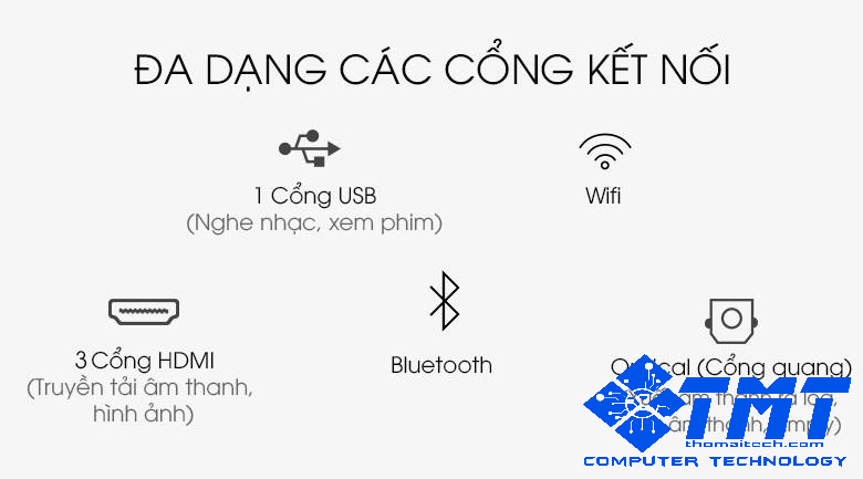 - Kết nối USB (2 cổng), kết nối HDMI (4 cổng).
