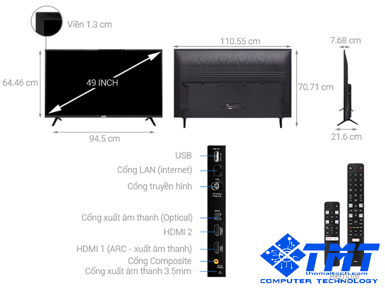 Được trang bị kích thước màn hình 49 inch tivi TCL chắc chắn sẽ là sự lựa chọn phù hợp nhất cho căn phòng có diện tích lớn như: phòng khách, phòng họp, phòng ngủ lớn…