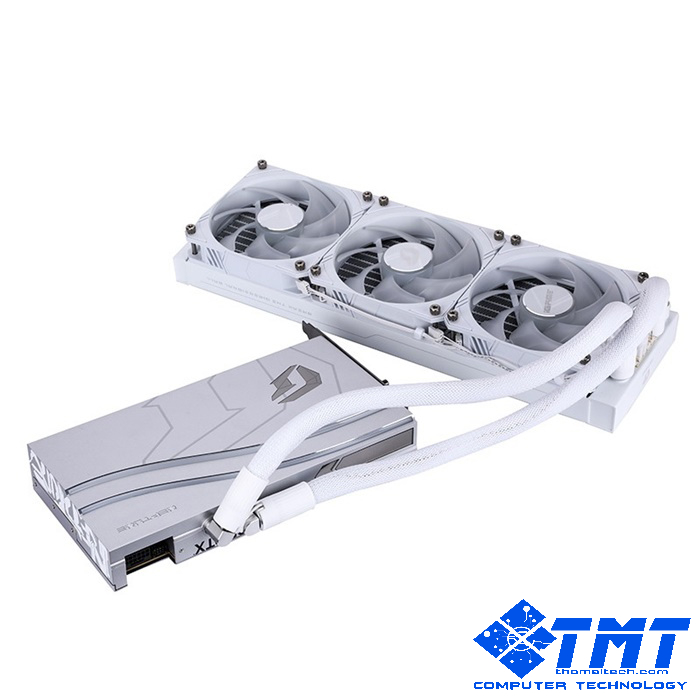 VGA Colorful iGame GeForce RTX 4080 16GB Neptune OC-V sẽ sử dụng bộ làm mát tương tự như VGA RTX 4090 với bộ tản nhiệt bên ngoài 360mm. Dòng VGA Colorful RTX 4080 16GB giải pháp làm mát bằng chất lỏng được nâng cấp so với thế hệ trước. Dòng Neptune mới có tông màu bạc và trắng. Card đồ họa 2 khe mỏng đi kèm với một lớp vỏ kim loại và ánh kim mờ – hai dải đèn RGB chạy xuyên qua lớp vỏ cung cấp ánh sáng xung quanh. Ánh sáng RGB hoàn toàn có thể tùy chỉnh bằng ứng dụng iGame Center.