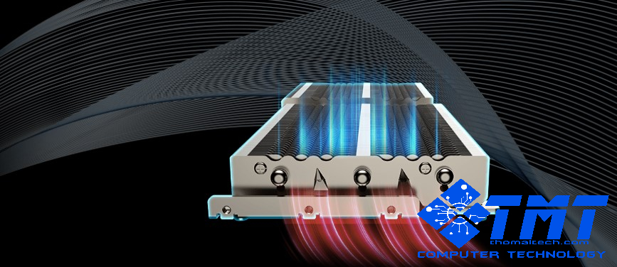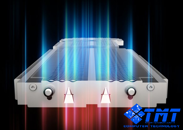 Nhiệt từ GPU sẽ được truyền trực tiếp ngay tới tấm đế bằng đồng mạ Niken và truyền nhanh chóng tới ống dẫn nhiệt. Việc tăng cường mở rộng hệ thống truyền nhiệt với các cơ chế hiện đại mang tới hiệu quả cao hơn, cải thiện hiệu suất tổng thể.