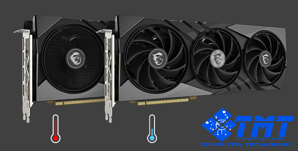 Chế độ Zero FROZR thông minh cảm biến nhiệt độ và đưa ra phương án tản nhiệt hiệu quả nhất trong từng tình huống. Khi chạy những tác vụ nhẹ, MSI Geforce RTX 4060 Ti GAMING X SLIM 16GB gần như không cần tản nhiệt, quạt sẽ không quay để đảm bảo cho sự yên tĩnh tối đa.