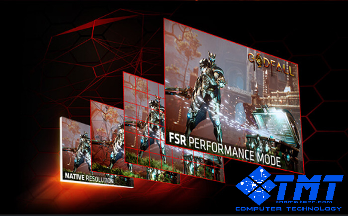 Công nghệ AMD FidelityFX in Super Resolution1 (FSR) tăng tốc độ khung hình của bạn lên trung bình 2,4 lần trên một số trò chơi được hỗ trợ FidelityFX Super Resolution với trải nghiệm chơi game chất lượng cao, độ phân giải cao được cung cấp bởi card đồ họa AMD Radeon RX 6000 Series. Tối ưu hóa trải nghiệm chơi game của bạn giữa bốn cài đặt trước, từ độ trung thực hình ảnh tốt nhất đến hiệu suất tối đa.