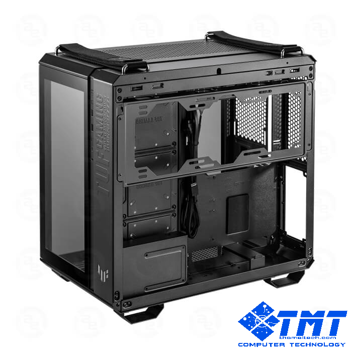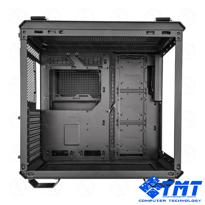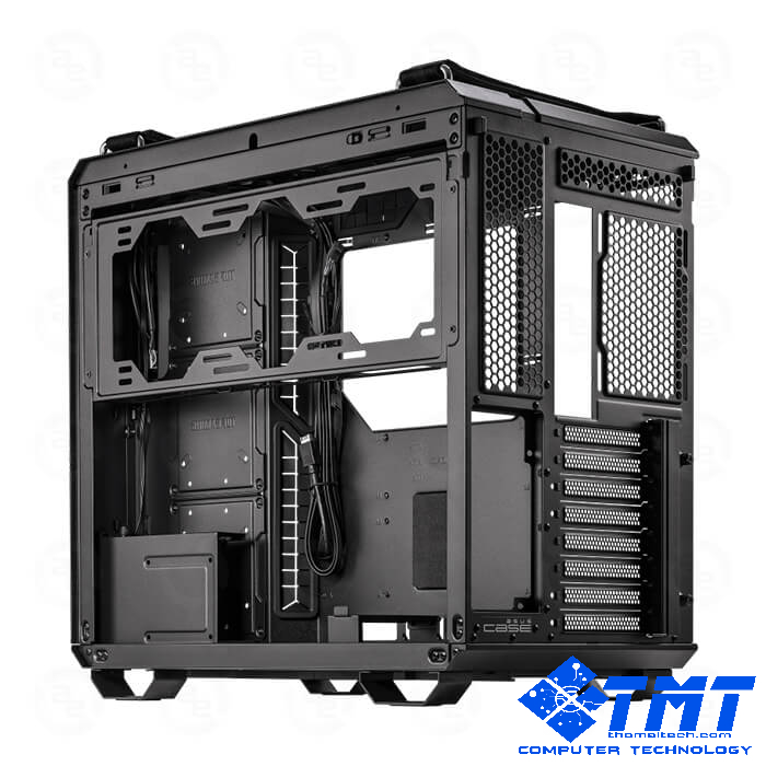 Vỏ case TUF GT502 có một thiết kế chia ngăn đột phá, vị trí lắp nguồn (PSU) và khay HDD được đặt về phía bên cạnh giúp TUF GT502 có thể bổ sung gió bằng các quạt tản nhiệt lắp phía dưới (tuỳ chọn). Từ đó việc làm mát card đồ hoạ được tối ưu toàn diện.