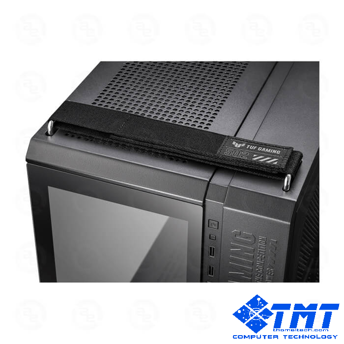 Dây đai đi kèm chịu được trọng tải tới 30kg giúp người dùng di chuyển case dễ dàng ngay cả khi đã lắp hoàn chỉnh linh kiện phía trong. Đồng thời đây là một chi tiết tăng tính thẩm mỹ và tạo điểm nhấn kích thích thị giác đặc trưng của ASUS.