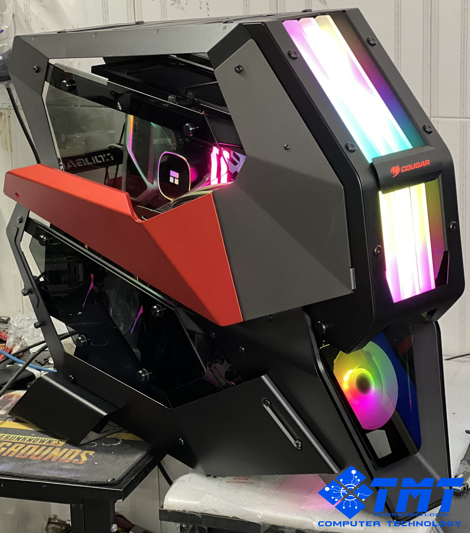 Cùng với tối ưu hóa gaming, chúng ta không thể bỏ qua cơ chế làm mát hiệu quả cửa case Conquer. Hãng Cougar đã cập nhật xu hướng tản nhiệt nước custom vào thiết kế của mình. Mẫu case Cougar Conquer 2 hỗ trợ tản nhiệt nước với radiator 360mm ở trên, radiator 240mm ở trước giúp lưu thông khí dễ dàng hơn.